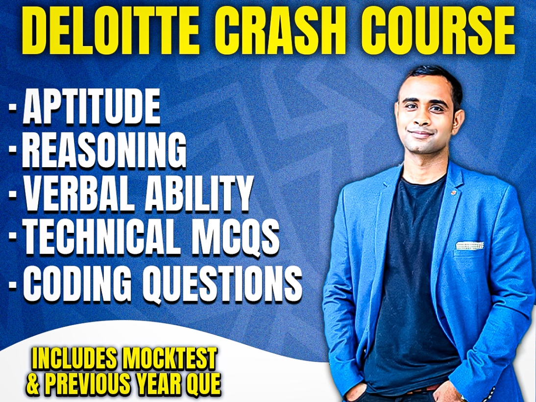 Deloitte NLA 2026 Crash Course - With MOCK Test + PYQ This crash course is specifically designed to help students prepare effectively for the Deloitte NLA (Next Level Assessment) 2026 exam. The course combines comprehensive content delivery, strategic test-taking tips, and rigorous practice to ensure that candidates feel confident and ready to tackle the exam. Here's a detailed overview of the course: 1. Aptitude 2. Verbal Ability 3. Reasoning 4. Technical MCQ 5. Coding π₯ Recorded & Live Classes: Enjoy a blend of pre-recorded lessons and interactive live sessions, providing flexibility and real-time support. π₯ Quantitative Aptitude: From fundamental concepts to advanced techniques, master quantitative aptitude with structured lessons and practice problems. π₯ Reasoning: Develop strong reasoning skills with a focus on both basic and advanced problems, ensuring you tackle any challenge with ease. π₯ Verbal Ability: Enhance your verbal skills, including comprehension, sentence arrangement, and vocabulary, with targeted exercises and explanations. π₯ Coding: Build your coding expertise from the basics to advanced levels, including Data Structures and Algorithms (DSA) in C++ and Java, with hands-on coding challenges. π₯ Mock Test - It will be uploaded by this weekend 19/01/2025. π₯ How to Access on Iphone : β’ Download the OnlineStudy4u App from Play Store β’ Log in Using Your Mobile Number β’ Verify Your Account with OTP β’ Browse the Store and Select Your Course. π₯ How to Access on Android Mobile β’ Download the MyInstitute App by Bunch Microtechnologies Pvt. Ltd. from the App Store β’ Enter Org Code: KFQRN and Click "Verify" β’ Log in with Your Mobile Number β’ Verify Your Account Using OTP β’ Explore the Store and Choose Your Course π₯How to Access on Laptop: 1. Open Chrome and go to web.classplusapp.com 2. Enter Org Code: KFQRN, then click "Verify" 3. Enter your mobile number and the OTP you receive 4. Go to Store and select your course (No batch code required) Please Note: π₯π₯This course is non-refundable. Ensure you review all details carefully before purchasing. The PDFs and Videos are only accessible online and cannot be downloaded.